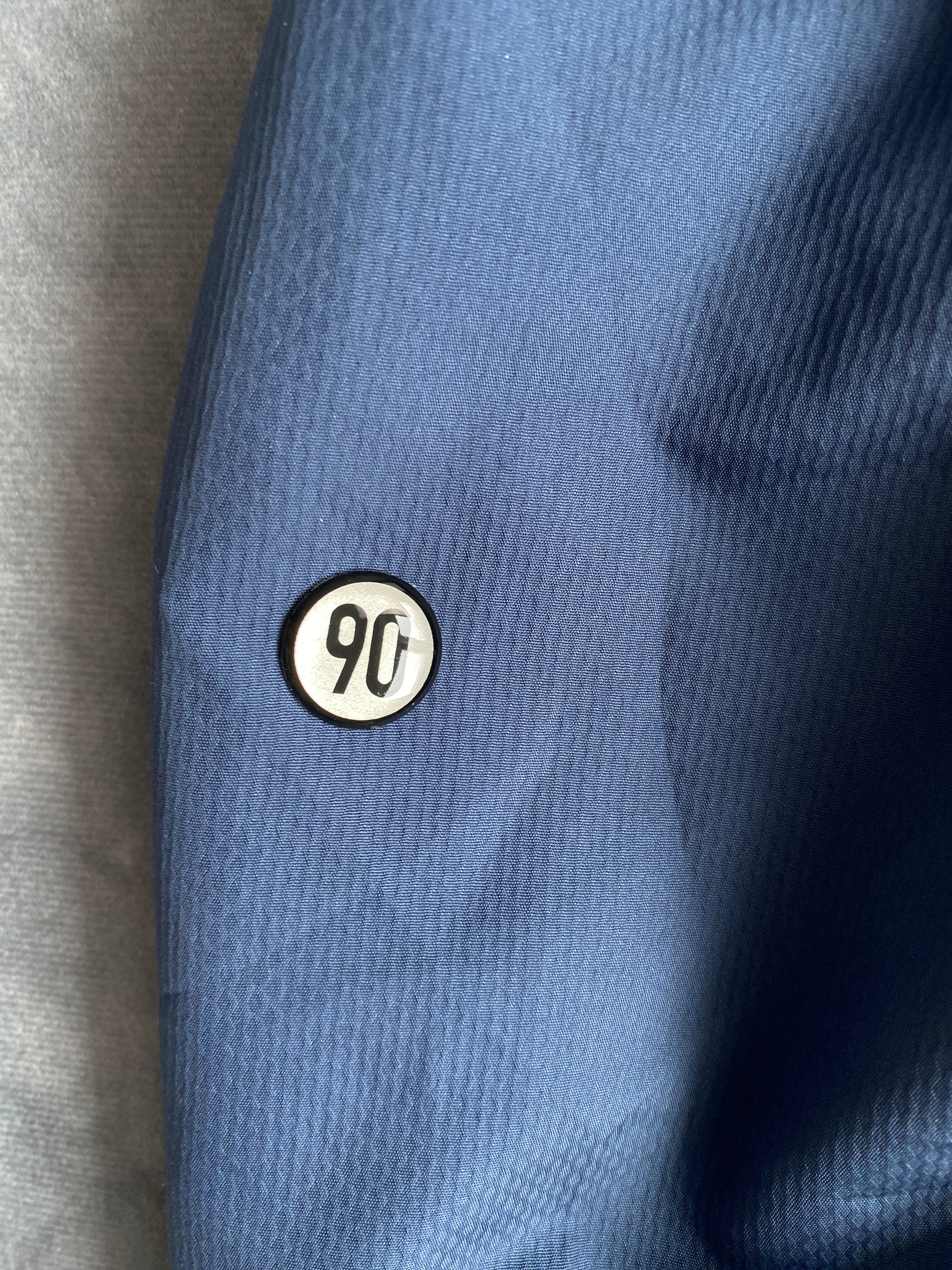 Das 90‘s Wappen von der Hose ist leicht gelöst